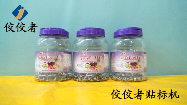 下圖展示的是我們整個貼標動作完成后的成品,我們可以看到標簽平整無褶皺,高度一致無歪斜。頂部標簽“正中靶心”,這些都展示了我們這臺設備的精度和效果,平面貼標和圓瓶貼標完美的結合,減少了客戶貼標的工藝,兩個工藝一臺設備實現。