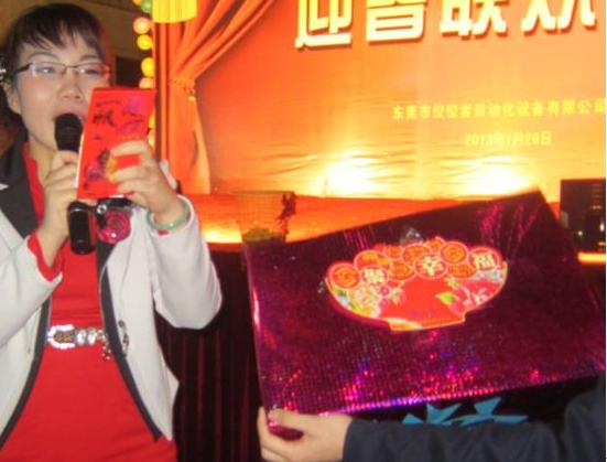 腦筋轉(zhuǎn)過之后,第一輪的抽獎(jiǎng)也開始了,由我們的營銷總監(jiān)梁總抽取幸運(yùn)兒。獎(jiǎng)品是現(xiàn)金100元,抽20個(gè)。看看主持人那歡喜的模樣。