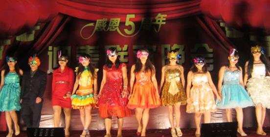 抽獎(jiǎng)最激烈的時(shí)刻,由公司美女走秀的創(chuàng)意時(shí)裝來了個(gè)中間插播。不多說了。圖片比文字更有說服力,精彩不用言語。