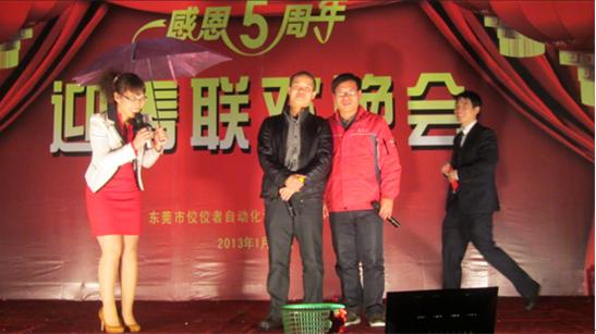 2013年1月26日,是東莞市高臻智能自動(dòng)化設(shè)備有限公司全體員工年終聯(lián)歡的時(shí)刻。今天天氣溫和,不冷不熱。但恰恰卻在晚會(huì)將要開始前半個(gè)小時(shí),天上下起了毛毛細(xì)雨,雨為聚財(cái),這正是寓意著來年我們高臻智能的業(yè)績將要更上一層樓!