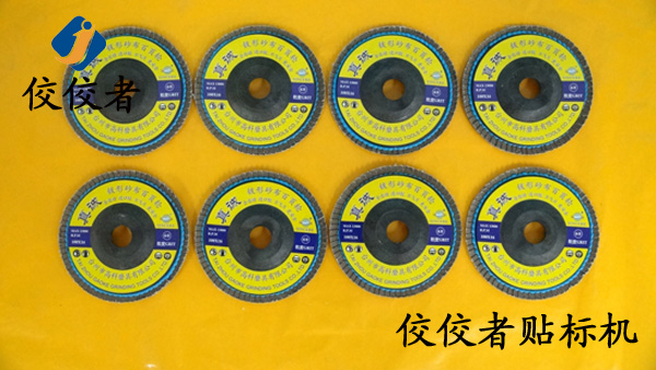 我們來一起欣賞下這臺全自動砂輪片貼標機的貼標樣品: